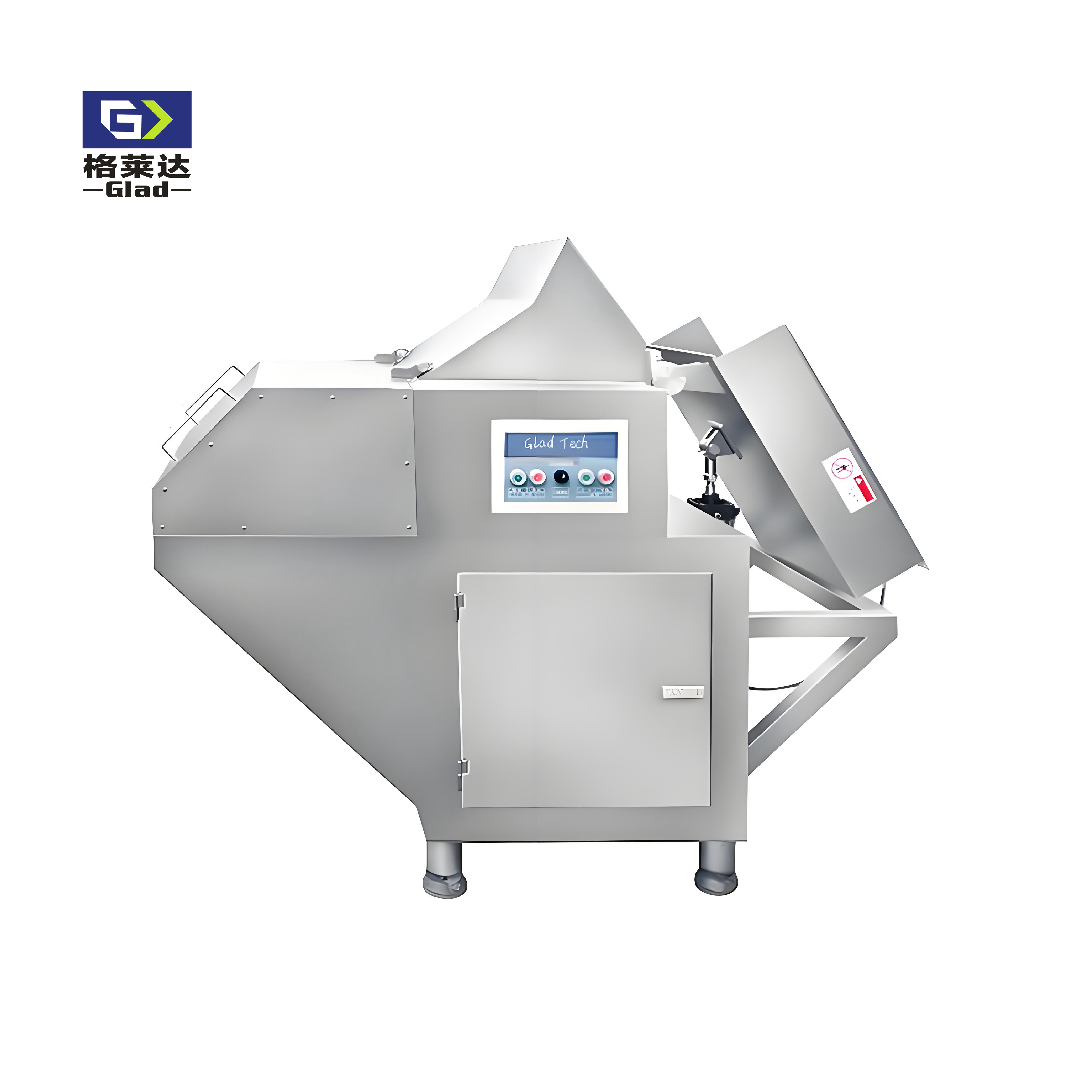 The frozen meat blocks are easy to load into the cutting area, where they are transformed by sharp blades into slices or with cross blades into smaller cube pieces. It is simple and safe to operate.